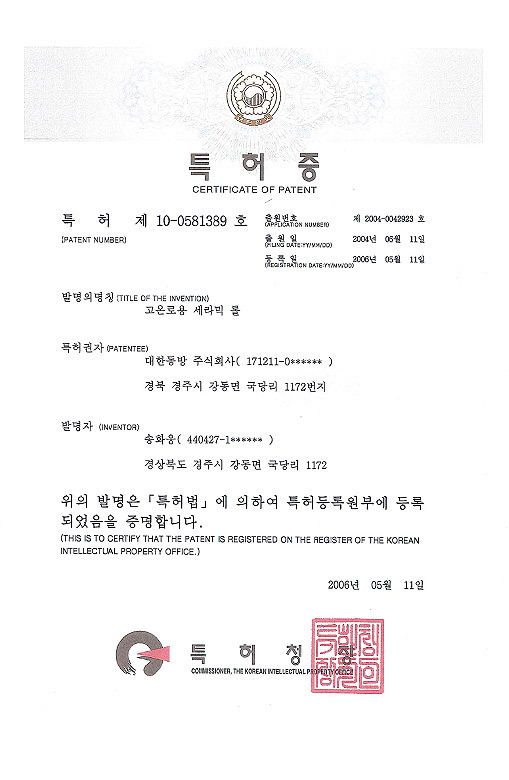 특허 제 0476282호
