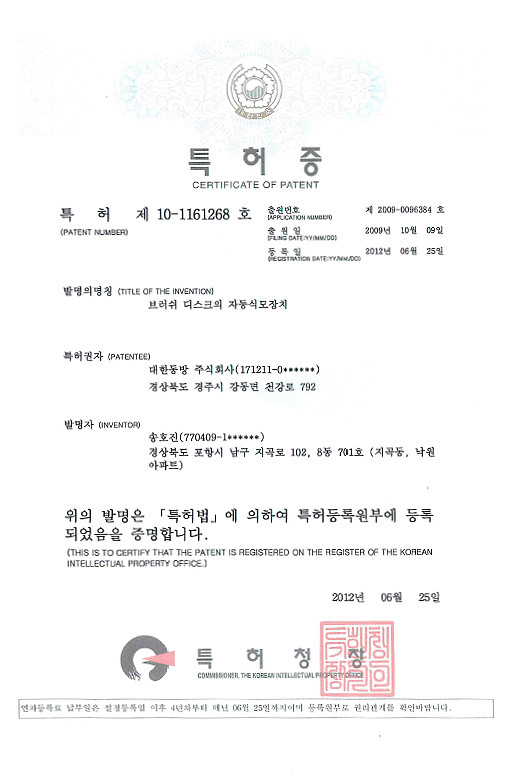 특허 제 10-1161268호