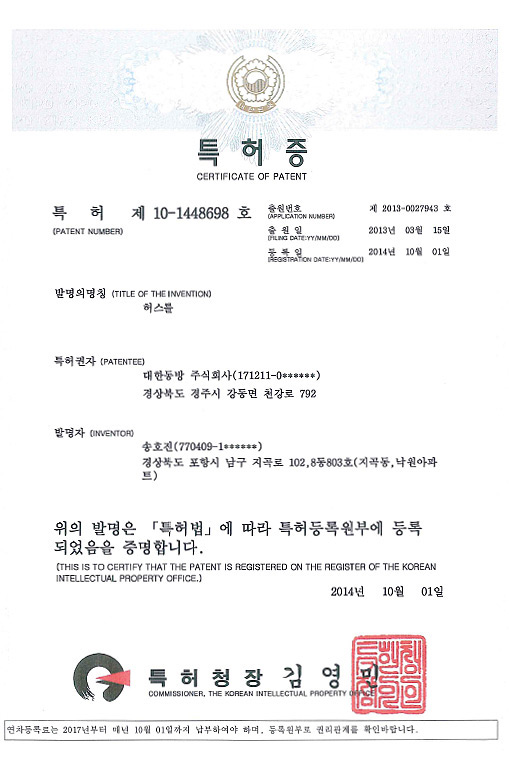 특허 제 10-1448698호