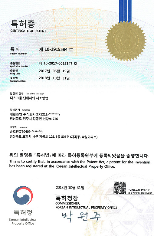 특허 제 10-1915584호