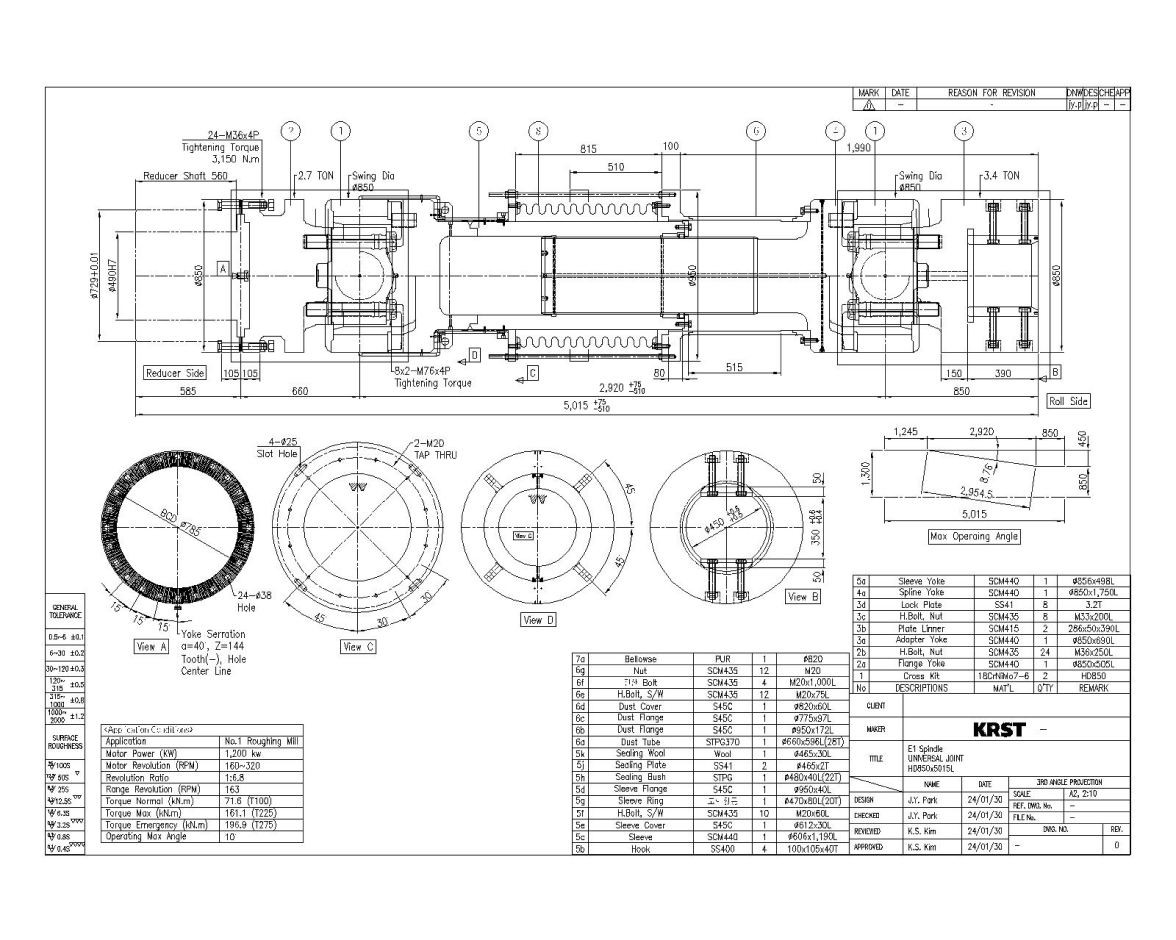 The Edger Stand, used in the Rough Mill at POSCO Gwangyang 4th Hot Rolling, is essential for rolling the left and right widths of slabs. Among these, the E1 Spindle, which is responsible for the first width rolling, is positioned at the front and experiences the highest load. Due to the high torque, it was previously entirely reliant on imported equipment. However, in 2018, it was successfully domestically developed by KRST and continues to serve as the main spindle to this day.