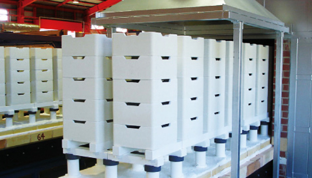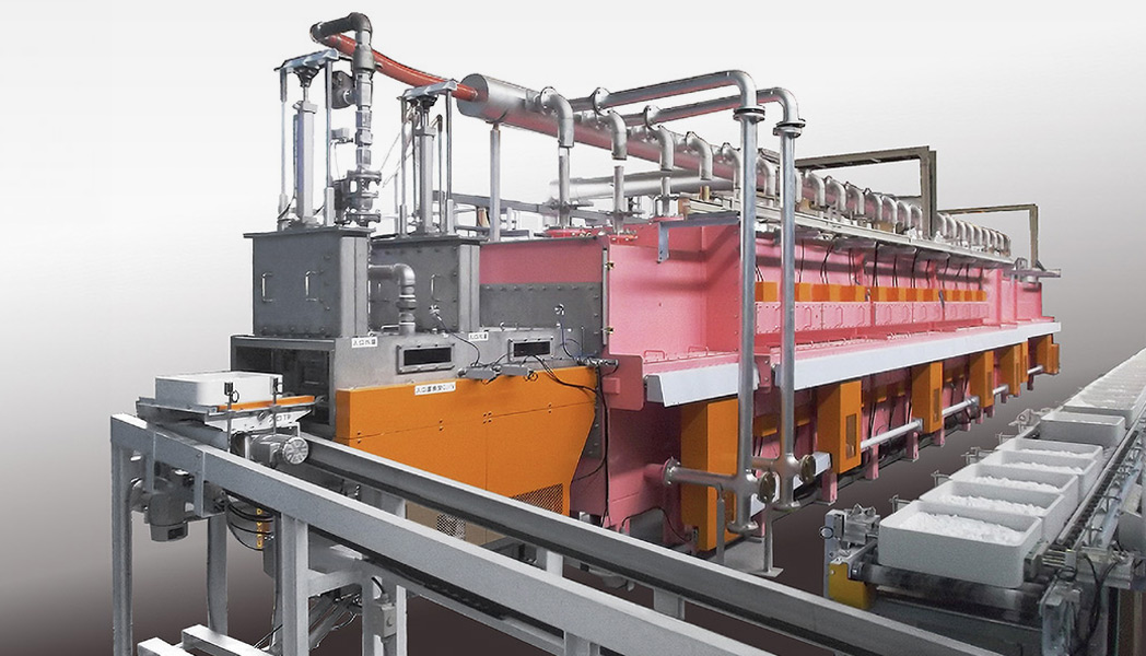A Roller Hearth Kiln has rollers installed at its hearth, and continuously fires products.