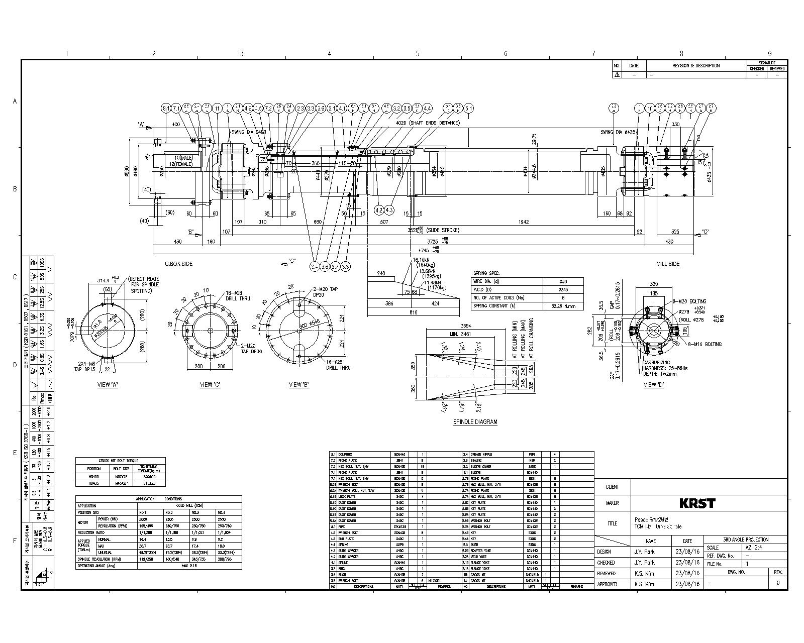 冷延部で使用されるTCMスタンドラインは、熱延鋼板を酸で洗浄し、その後ミルで再圧延を行うことで、滑らかで光沢のある鋼板を製造するための重要な設備です。このプロセスにおいて、モーターとロールを接続するスピンドルは、熱延工程と異なり、高トルクの伝達に加え、回転時に滑らかな鋼板表面に傷を付けない安定した高速回転が求められます。