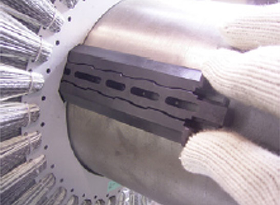 ディスク積層方式により、所望の密度を持つブラシロールの製作が可能です。特に高密度のブラシロールは、内部圧力を長期間維持できるため、過酷なブラシ作業に適しています。