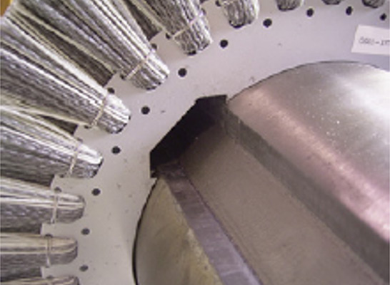 Disk 적층 방식으로 원하는 밀도의 Brush Roll이 제작 가능합니다. 또한 고밀도의 Brush Roll은 높은 내부 압력을 장시간 유지할 수 있어 강력한 Brush 작업에 적용됩니다.