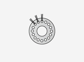 원반 모양의 철판(디스크) 곡면 부에 타공을 한 후 Brush Filament를 채워 만드는 Brush 제작의 한 형태 입니다.