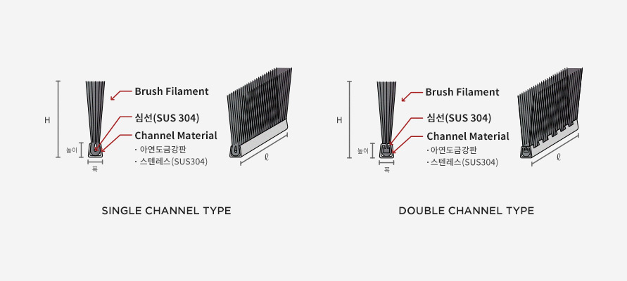 - Brush Trim (길이) : Brush Roll의 수명, Brushing 작업양 등을 고려하여 선정할 필요가 있습니다.