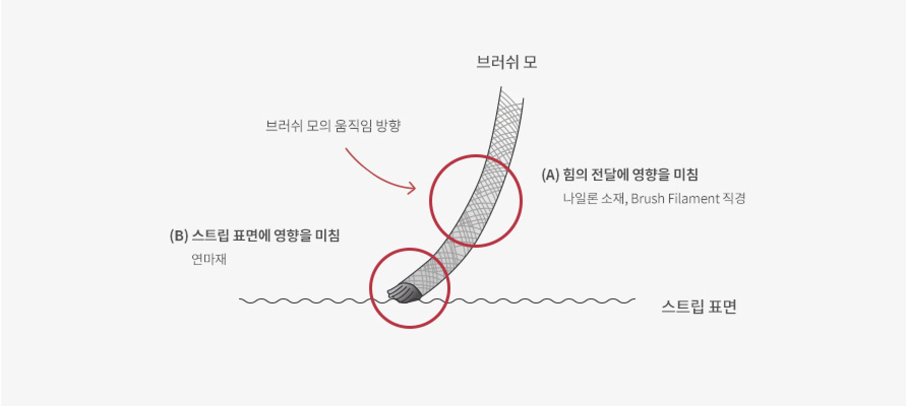 Brush Filament 끝부분에 힘을 전달하는 역할(A)과