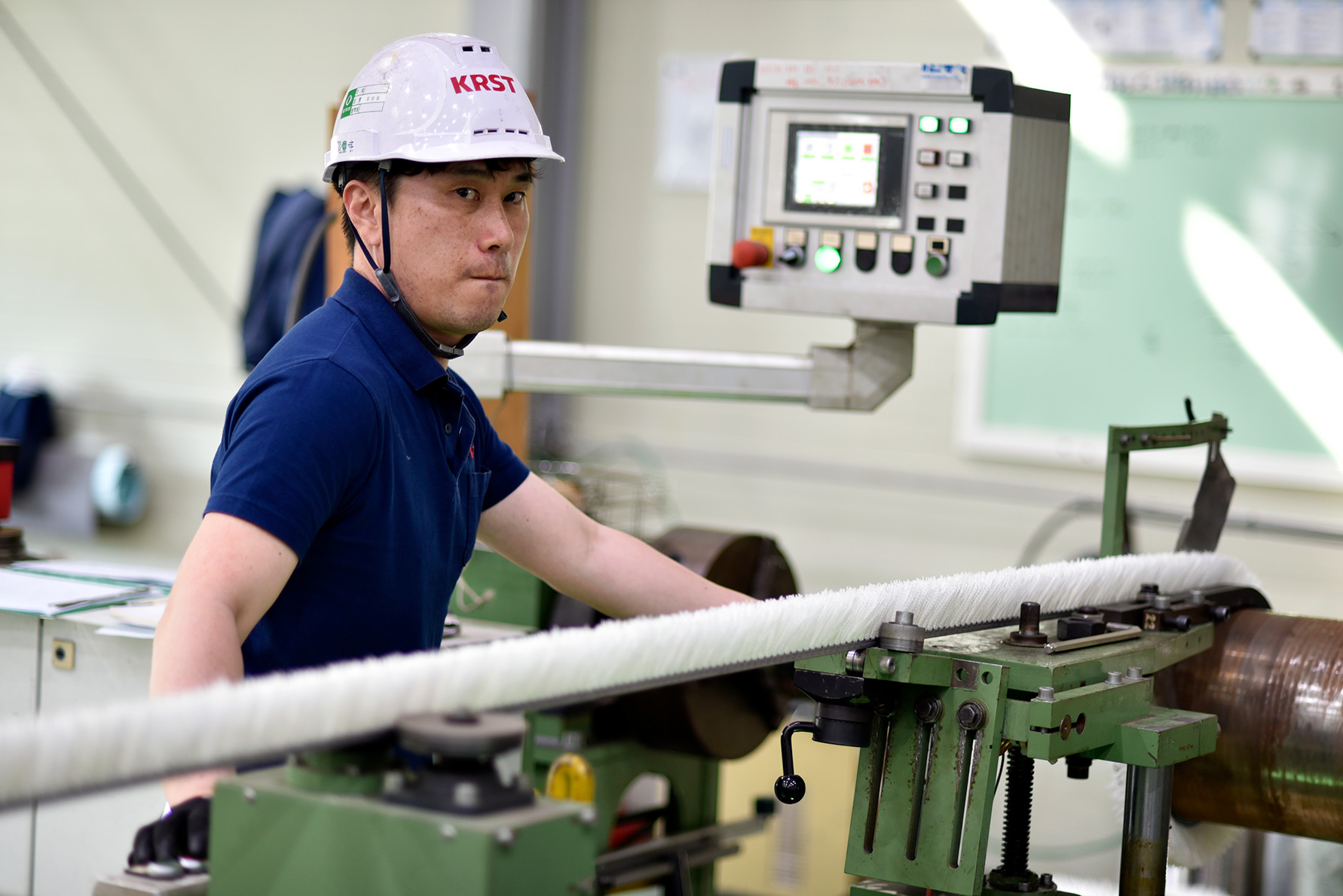 Brush Roll은 철강, 비철금속 등 Strip 표면의 물리적 세정작업에 사용되는 Roll로서 최종 Brush Roll 제품이 나오기까지 설계, 실생산, 제품조립의 일관생산공정을 갖추고 고객사 분들의 다양한 용도에 맞는 Brush Roll을 제작하고 있습니다.