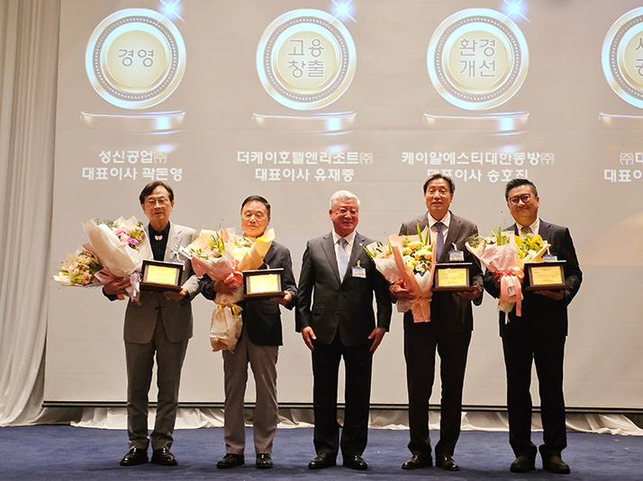 상공대상 부문별 수상자는 ▷경영-성신공업㈜ 곽돈영 대표 ▷고용창출-더케이호텔앤리조트㈜ 유재중 대표 ▷기업환경개선-케이알에스티 대한동방㈜ 송호진 대표 ▷지역사회공헌-㈜대산금속 권영훈 대표다.